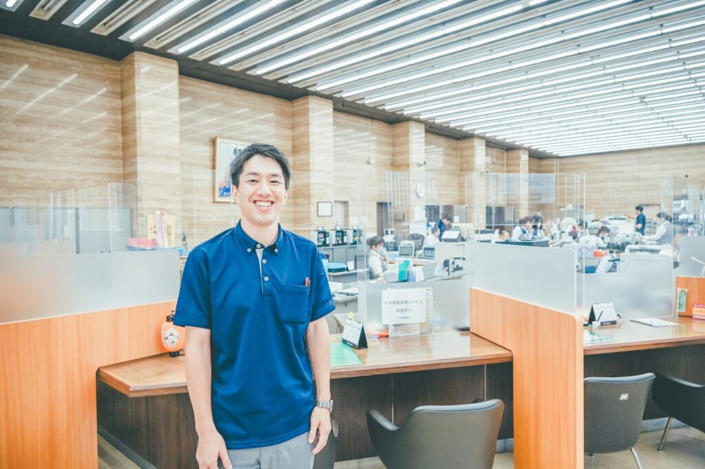 他に、地元である福知山市夜久野町にある額田支店や篠尾支店で、法人・個人を対象に3年間営業職を担当、その後は本部の「地域創生事業部」に異動し、2年間経営支援業務を行っていました。具体的には全店舗のお客さまを対象に、補助金申請のサポートやDX・脱炭素の支援などを担当しました。