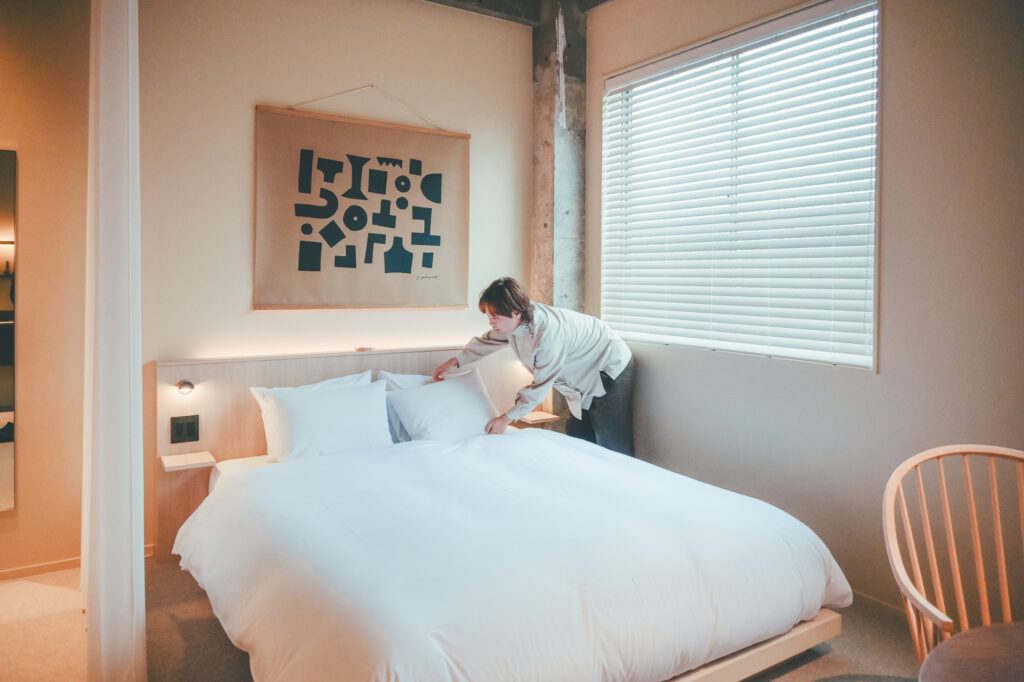 1つ目は、小さなホテルだからこそ感じられる、距離の近さです。全9室の宿なので、フロントも調理も清掃も、全部自分たちでやります。