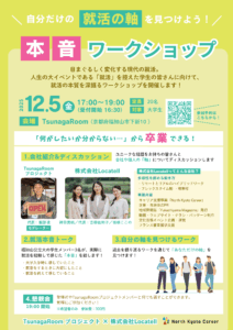 2025年12月5日、株式会社Locatell・合同会社Gel-bananaの共催により「自分だけの就活の軸を見つけよう!本音ワークショップ」を開催しました。